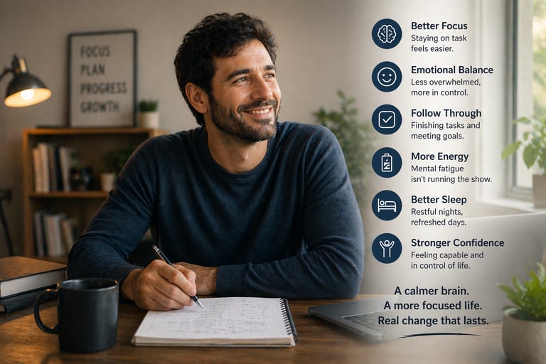 When the brain regulates more efficiently, things like focus, emotional control, and follow-through often begin to improve naturally.
