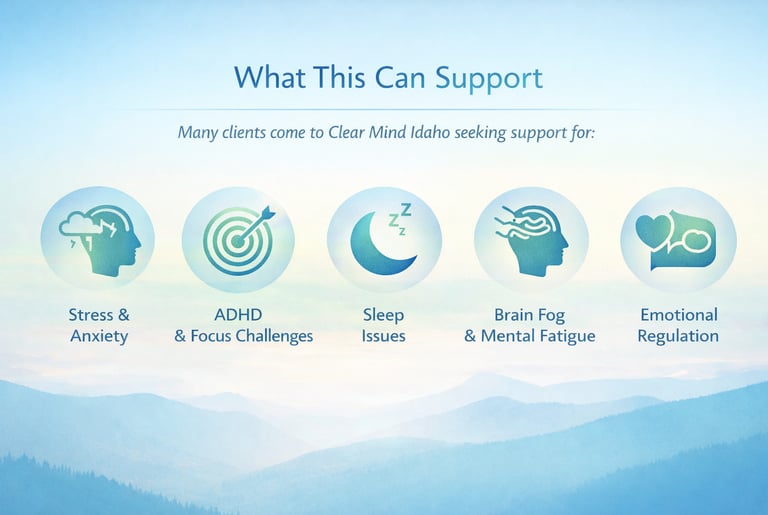 At Clear Mind Idaho, we take a comprehensive approach to supporting the brain and nervous system. Rather than focusing on just one aspect of brain function, our services are designed to work together to support regulation, energy, and overall balance.