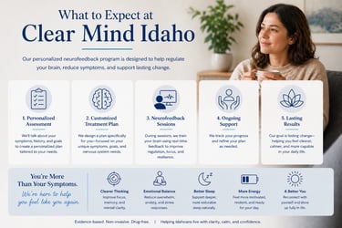 At Clear Mind Idaho, we support the brain and nervous system using gentle, non-invasive neurofeedback technology designed to help the body move toward greater balance, calm, and self-regulation.